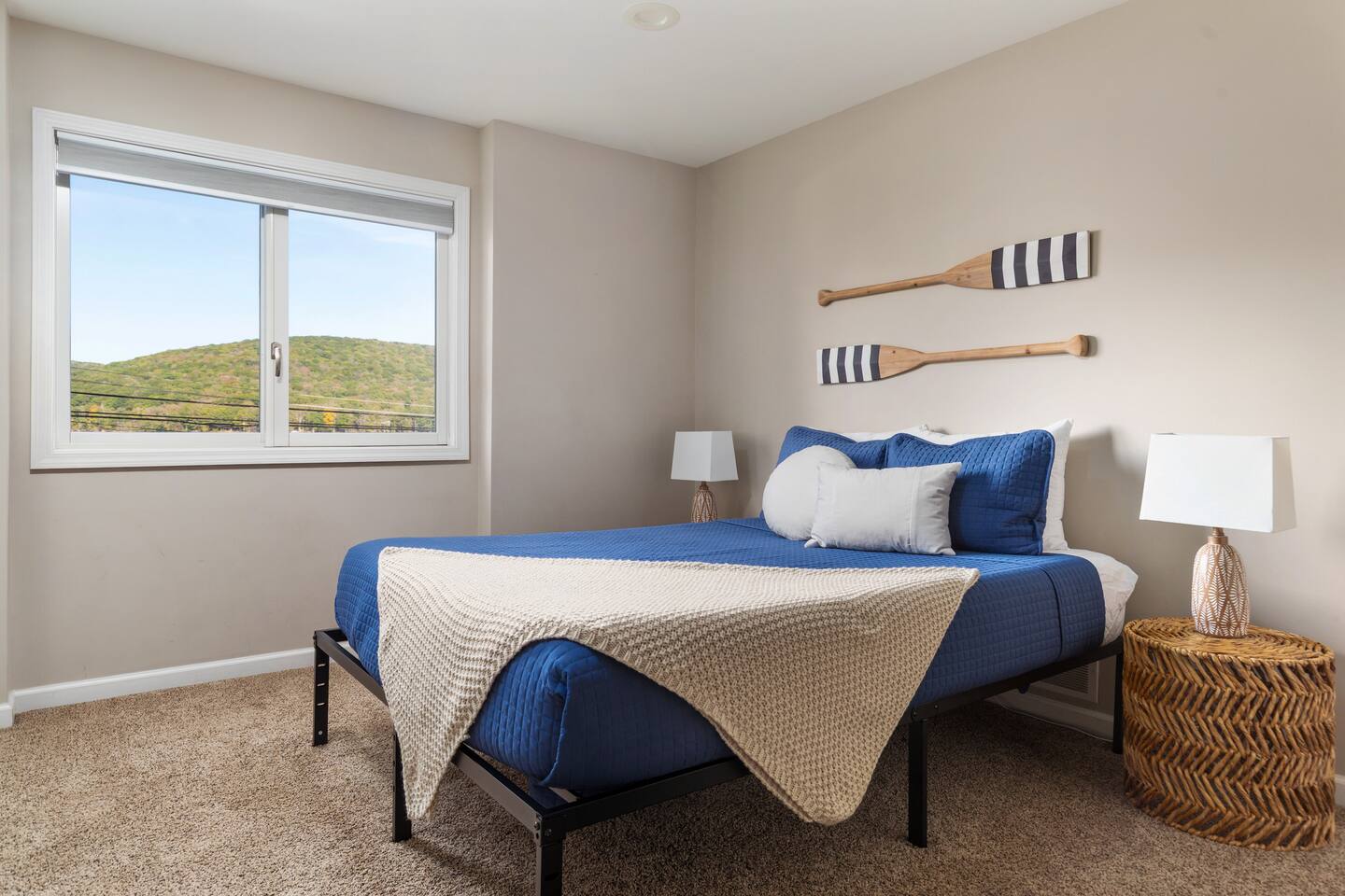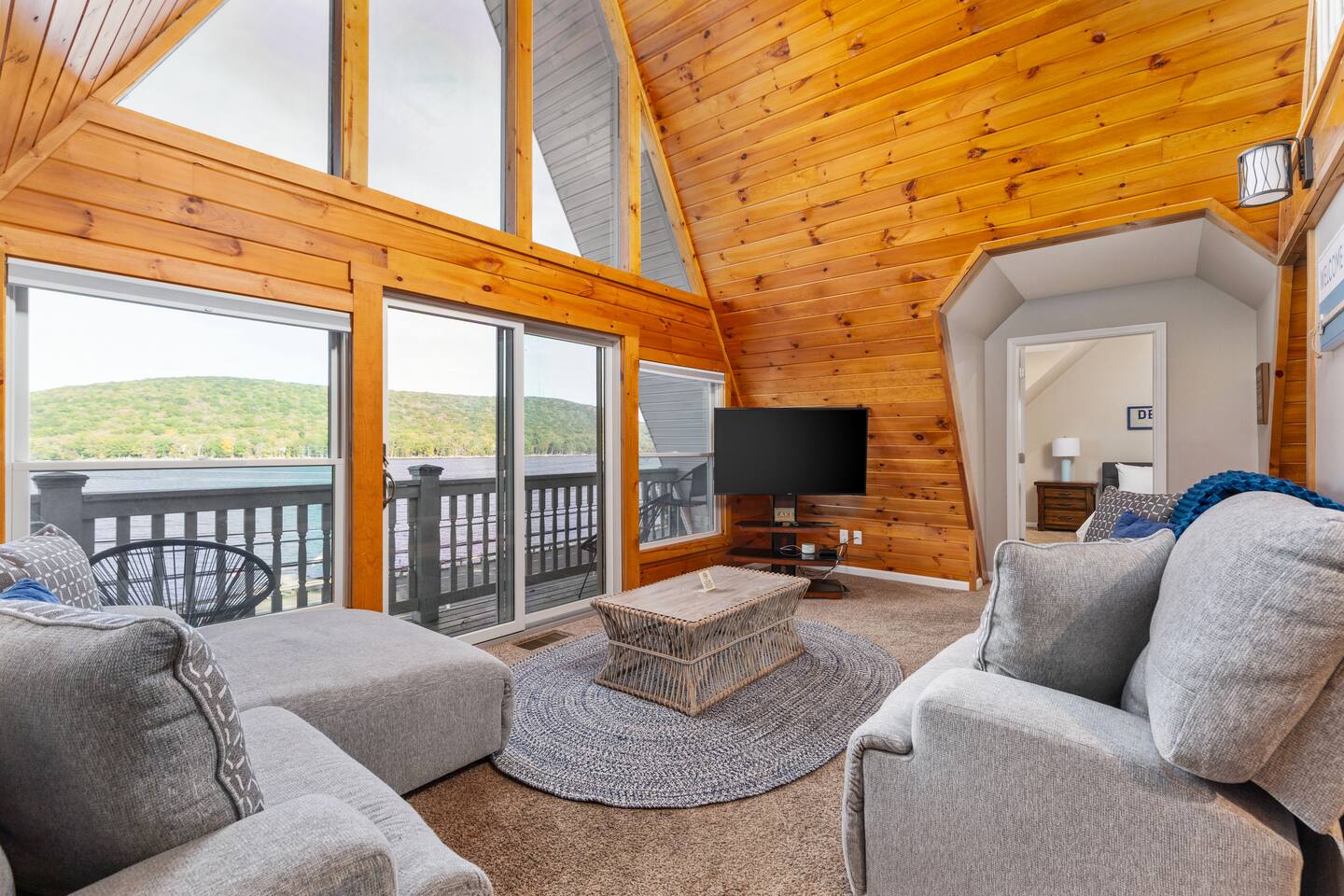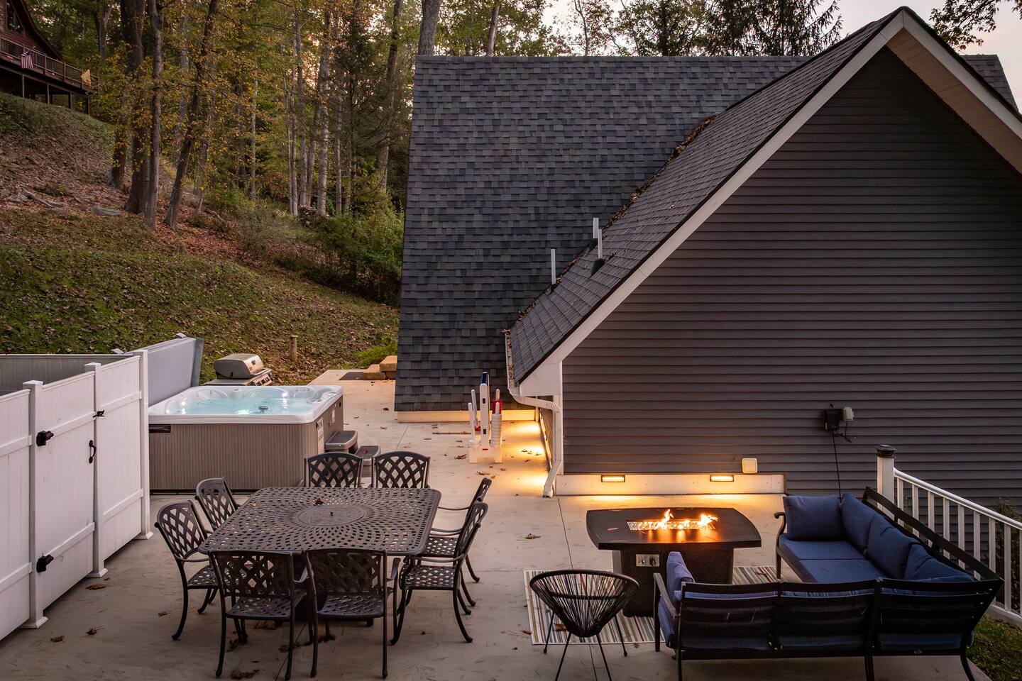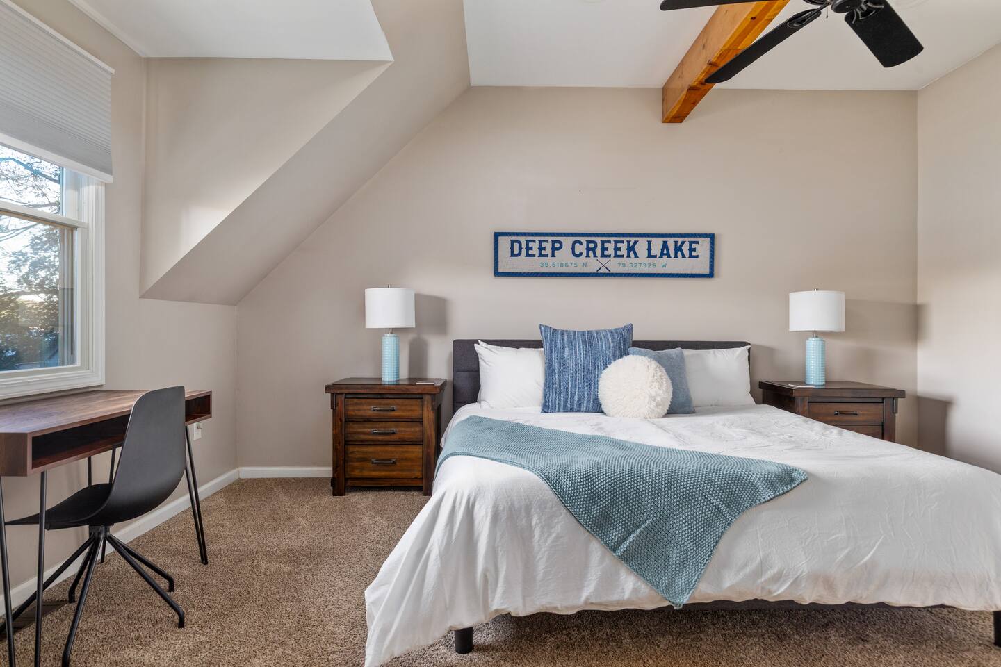 π Nearby Attractions - π Wisp Resort β skiing πΏ, tubing, zipline, mountain coaster & year-round fun - π Deep Creek Lake State Park β sandy swimming beach π, boating πΆ, & hiking trails π₯Ύ - π Swallow Falls State Park β famous waterfalls π¦ & picture-worthy hikes Stay right in the heart of Deep Creekβs most popular attractions! π‘ Property Highlights - π Watch the sunrise spill across the lake through the A-Frameβs floor-to-ceiling windows - π After a day on the slopes, unwind in the hot tub and let the mountain air do its thing. - π― Game room with foosball, basketball & ski ball - πΆ Private dock for swimming, kayaking & boating (seasonal: per Deep Creek Lake rules) - π Smart keyless entry for easy check-in - π Gas grill (propane included) - πΆ High-speed WiFi β ideal for streaming or remote work π Sleeping Arrangements - Bedroom 1: King Bed - Bedroom 2: King Bed - Bedroom 3: Queen Bed + Futon - Bedroom 4: Two Full Beds - Bedroom 5: Twin Bed - Additional: 1 Pack N' Play + Baby Gate + Highchair can be available by request. Sleeps up to 12 guests (including futon) β great for family gatherings, multiple couples, or group retreats. ποΈ Interior Features - Spacious open-concept living room with lake views - Modern rustic design with live-edge dΓ©cor & cozy lake house touches - Smart TVs in living spaces for streaming & family movie nights - Custom Deep Creek dining table for shared meals π³ Outdoor Fun - Private year-round hot tub - Furnished deck β sip morning coffee with lake views - Fire table for stargazing & sβmores - Giant Connect Four game for outdoor play - Private lake frontage + dock (see note below) π³ Kitchen & Dining - Fully equipped kitchen: full-size fridge, oven, microwave, & dishwasher - Cookware, utensils & family-friendly dining essentials - Coffee maker β & toaster for easy mornings π Important Notes - πΎ No pets - π No smoking - π« No parties/events - Professionally cleaned & sanitized before every stay - π· Security camera at exterior entry only (doorbell) - Parents: supervise children on the dock & crossing the road to access lakefront -πΆ Dock Availability: Per Deep Creek Lake regulations, the dock is removed from December 1 through April 1 (or later if required). It will not be available for guest use during this time. - π Located on the main road; traffic noise may be heard π Parking - Private driveway fits up to 5 vehicles β οΈ Other Things to Know - Quiet hours: 10 PMβ8 AM (please respect neighbors) - Professional pest control in place, but country critters like ladybugs or stink bugs may appear - Local wildlife includes deer, black bears & snakes β admire from a safe distance - Owner closet/utility room is off-limits Hot Tub Rules β Relax & Recharge the Right Way π¦β¨ We want you to soak up every second of your stay β and that starts with keeping our hot tub sparkling and safe! Please follow these easy guidelines: - π‘οΈ Keep It Cozy: Leave the temp set to 100Β°F when not in use to keep it perfectly balanced. - π‘οΈ Cover It Up: Always close the lid after soaking to keep the water clean and warm. - πͺ Always re-cover & lock when finished. - πΏ Quick Rinse First: A fast shower = fresh, happy water for everyone! - π« Keep It Simple: No food, alcohol spills, excessive lotions, bubble baths, pets, or anything funky in the water. - πͺ Be Kind to the Cover: Hang it on the rack, not on the ground, to keep it clean and damage-free. - πΈ Heads Up: Major cleanup (like drain & refill) from misuse = $300 fee. - π Power Down: Turn off the jets and re-cover when you're done relaxing. - π₯ No Glass, Please: Stick to safe cups β broken glass is a no-go near the spa. - β οΈ Safety Zone: No running, jumping, or wild moves around the hot tub β kiddos must be supervised! - π§΄ Towel Off: Dry before heading inside to keep the floors cozy and slip-free. - π‘οΈ Be Safe: Watch your step and look out for each other around the hot tub area. Thanks for helping us keep Lakeside Hill Chalet a 5-star experience! π Why Guests Love This Lake House -β¨ Architectural A-Frame design with sweeping lake views -π Private hot tub and dock access for year-round relaxation -πΏ Minutes to Wisp Resort & Deep Creek adventures -π· Perfect for family reunions, couplesβ getaways, and lake weekends - π Evenings by the fire table, mornings with mountain reflections Local Favorites -β Traderβs Coffee House β best lakeside latte views - π Brendaβs Pizzeria β family-friendly spot with classic Deep Creek pizza & lake views -π MoonShadow β local favorite for burgers & live music - π₯Ύ Swallow Falls State Park β donβt miss the waterfall loop trail -π· FireFly Farms Creamery β wine & cheese pairings nearby Find your moment of calm β and a little adventure β at Lakeside Hill Chalet.
