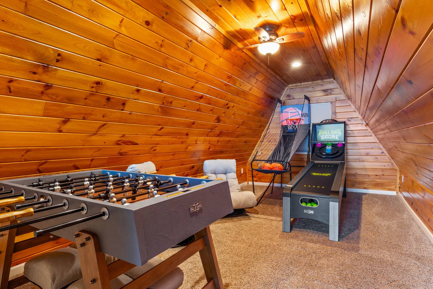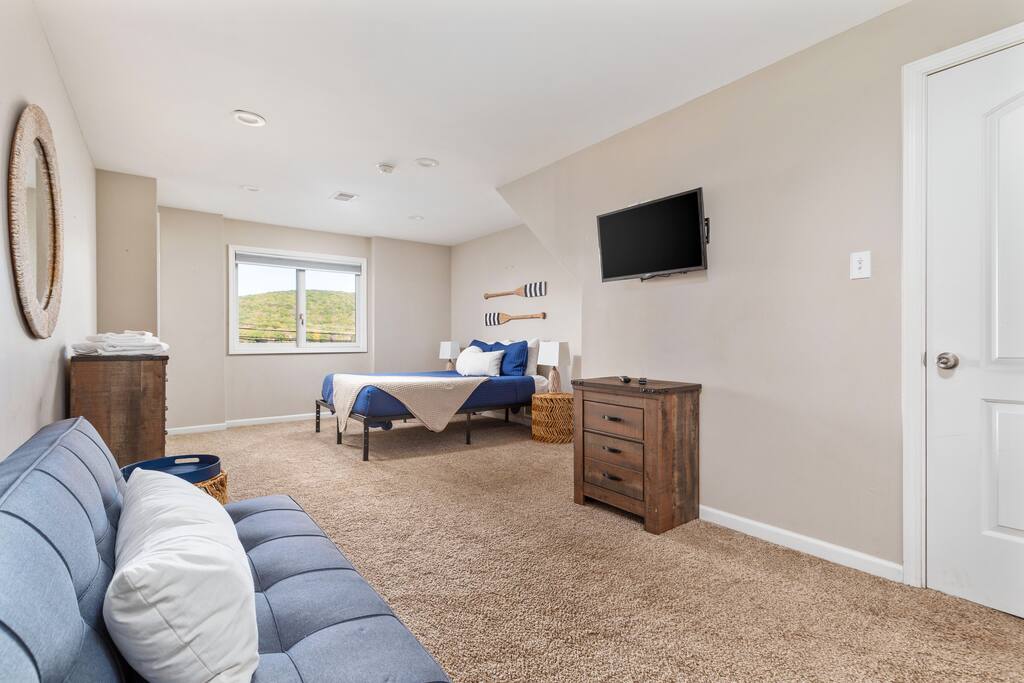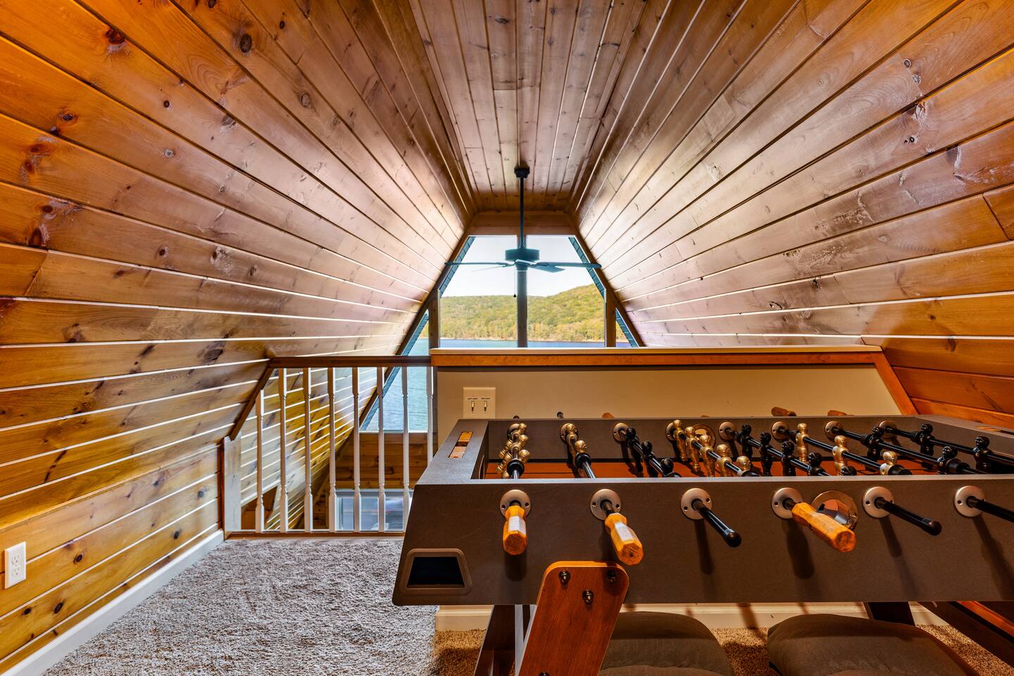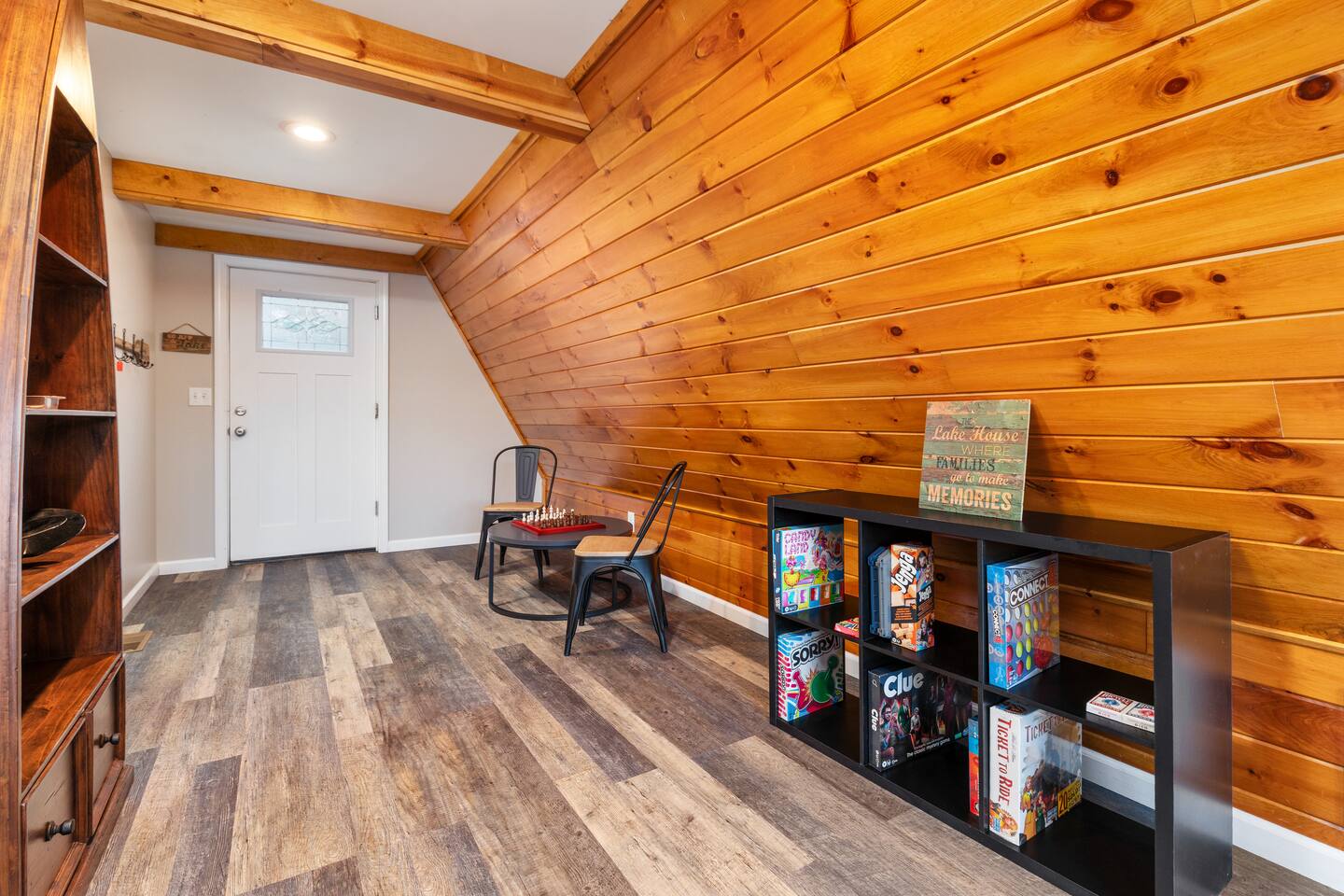 π Nearby Attractions - π Wisp Resort β skiing πΏ, tubing, zipline, mountain coaster & year-round fun - π Deep Creek Lake State Park β sandy swimming beach π, boating πΆ, & hiking trails π₯Ύ - π Swallow Falls State Park β famous waterfalls π¦ & picture-worthy hikes Stay right in the heart of Deep Creekβs most popular attractions! π‘ Property Highlights - π Watch the sunrise spill across the lake through the A-Frameβs floor-to-ceiling windows - π After a day on the slopes, unwind in the hot tub and let the mountain air do its thing. - π― Game room with foosball, basketball & ski ball - πΆ Private dock for swimming, kayaking & boating (seasonal: per Deep Creek Lake rules) - π Smart keyless entry for easy check-in - π Gas grill (propane included) - πΆ High-speed WiFi β ideal for streaming or remote work π Sleeping Arrangements - Bedroom 1: King Bed - Bedroom 2: King Bed - Bedroom 3: Queen Bed + Futon - Bedroom 4: Two Full Beds - Bedroom 5: Twin Bed - Additional: 1 Pack N' Play + Baby Gate + Highchair can be available by request. Sleeps up to 12 guests (including futon) β great for family gatherings, multiple couples, or group retreats. ποΈ Interior Features - Spacious open-concept living room with lake views - Modern rustic design with live-edge dΓ©cor & cozy lake house touches - Smart TVs in living spaces for streaming & family movie nights - Custom Deep Creek dining table for shared meals π³ Outdoor Fun - Private year-round hot tub - Furnished deck β sip morning coffee with lake views - Fire table for stargazing & sβmores - Giant Connect Four game for outdoor play - Private lake frontage + dock (see note below) π³ Kitchen & Dining - Fully equipped kitchen: full-size fridge, oven, microwave, & dishwasher - Cookware, utensils & family-friendly dining essentials - Coffee maker β & toaster for easy mornings π Important Notes - πΎ No pets - π No smoking - π« No parties/events - Professionally cleaned & sanitized before every stay - π· Security camera at exterior entry only (doorbell) - Parents: supervise children on the dock & crossing the road to access lakefront -πΆ Dock Availability: Per Deep Creek Lake regulations, the dock is removed from December 1 through April 1 (or later if required). It will not be available for guest use during this time. - π Located on the main road; traffic noise may be heard π Parking - Private driveway fits up to 5 vehicles β οΈ Other Things to Know - Quiet hours: 10 PMβ8 AM (please respect neighbors) - Professional pest control in place, but country critters like ladybugs or stink bugs may appear - Local wildlife includes deer, black bears & snakes β admire from a safe distance - Owner closet/utility room is off-limits Hot Tub Rules β Relax & Recharge the Right Way π¦β¨ We want you to soak up every second of your stay β and that starts with keeping our hot tub sparkling and safe! Please follow these easy guidelines: - π‘οΈ Keep It Cozy: Leave the temp set to 100Β°F when not in use to keep it perfectly balanced. - π‘οΈ Cover It Up: Always close the lid after soaking to keep the water clean and warm. - πͺ Always re-cover & lock when finished. - πΏ Quick Rinse First: A fast shower = fresh, happy water for everyone! - π« Keep It Simple: No food, alcohol spills, excessive lotions, bubble baths, pets, or anything funky in the water. - πͺ Be Kind to the Cover: Hang it on the rack, not on the ground, to keep it clean and damage-free. - πΈ Heads Up: Major cleanup (like drain & refill) from misuse = $300 fee. - π Power Down: Turn off the jets and re-cover when you're done relaxing. - π₯ No Glass, Please: Stick to safe cups β broken glass is a no-go near the spa. - β οΈ Safety Zone: No running, jumping, or wild moves around the hot tub β kiddos must be supervised! - π§΄ Towel Off: Dry before heading inside to keep the floors cozy and slip-free. - π‘οΈ Be Safe: Watch your step and look out for each other around the hot tub area. Thanks for helping us keep Lakeside Hill Chalet a 5-star experience! π Why Guests Love This Lake House -β¨ Architectural A-Frame design with sweeping lake views -π Private hot tub and dock access for year-round relaxation -πΏ Minutes to Wisp Resort & Deep Creek adventures -π· Perfect for family reunions, couplesβ getaways, and lake weekends - π Evenings by the fire table, mornings with mountain reflections Local Favorites -β Traderβs Coffee House β best lakeside latte views - π Brendaβs Pizzeria β family-friendly spot with classic Deep Creek pizza & lake views -π MoonShadow β local favorite for burgers & live music - π₯Ύ Swallow Falls State Park β donβt miss the waterfall loop trail -π· FireFly Farms Creamery β wine & cheese pairings nearby Find your moment of calm β and a little adventure β at Lakeside Hill Chalet.