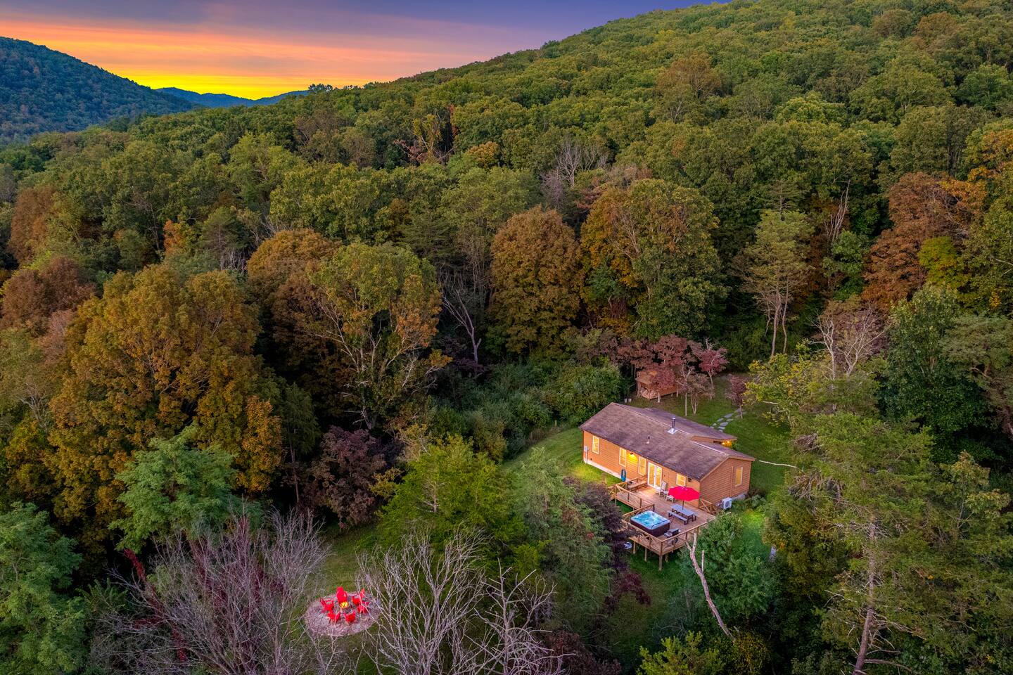 ✨ Book your West Virginia stargazing getaway today and enjoy sunsets, 🏔️ mountain views, and a private hot tub ♨️ under the stars ⭐. 📍 Nearby Attractions -🌲 Directly in George Washington National Forest 🚶 - 🏞 Lost River State Park – hiking & scenic overlooks -🐟 Trout Pond Recreation Area – WV’s only natural lake -🍁 🚗 Shenandoah’s Skyline Drive – breathtaking mountain views 🏡 Cabin Highlights -✨ 2 bedrooms | 1 full bath | Sleeps up to 4 -🪵 Unique modern-rustic décor for a stylish mountain vibe -🔥 Wood-burning stove — perfect for crisp fall nights - 🌅 Watch brilliant sunsets from the deck or fire pit 🔥 and marvel at the spectacular night sky ✨—perfect for unforgettable stargazing 🌌 -🔑 Keyless entry for smooth check-in -⚡ High-speed Wi-Fi — remote work–ready -🌲 Private, peaceful setting surrounded by nature 🛌 Sleeping Arrangements - Bedroom 1: Queen Bed - Bedroom 2: Queen Bed (Ideal for couples, friends, or a small family getaway) 🔥 Cozy Interior Features - Wood-burning stove (firewood provided for your first night) - Smart TV + board games for relaxed evenings - Unique cabin décor & thoughtfully designed living spaces 🌳 Outdoor Retreat - Private hot tub with mountain air & stargazing - Wood-burning fire pit (BYO firewood) - Furnished porch — your morning coffee spot - Outdoor seating to soak in the fall foliage 🍳 Fully Stocked Kitchen - Full-size fridge, oven, microwave & dishwasher - Cooking essentials, pots, pans & utensils - Coffee maker (drip) + tea kettle - Dishware & glassware ready for family meals 🌬️ Comfort & Extras - FREE Wi-Fi - Heat + cozy wood-burning stove - Fresh linens, towels & starter toiletries provided - Hair dryer, paper goods & kitchen basics included 🔒 Need-to-Know - 🚭 No smoking - 🚫 No parties or events - Professionally cleaned & sanitized between stays -📷 Outdoor security cameras (exterior only) 🚗 Parking - Private driveway fits up to 2 vehicles - During winter months, AWD or 4WD is recommended for safe access. ⚠️ Other Notes - Quiet hours: 10 PM–8 AM (please respect our neighbors) - Cabin uses septic system — flush mindfully - Expect occasional country critters like ladybugs or bugs 🐞 - You may encounter local wildlife including deer 🦌, black bears 🐻, and snakes 🐍 — please admire from a distance and secure all food/trash - Bring your own firewood for the wood fire pit 🌄 This fall, make memories at Hummingbird Crossing — where mountain air, starry nights, and cozy fires await.