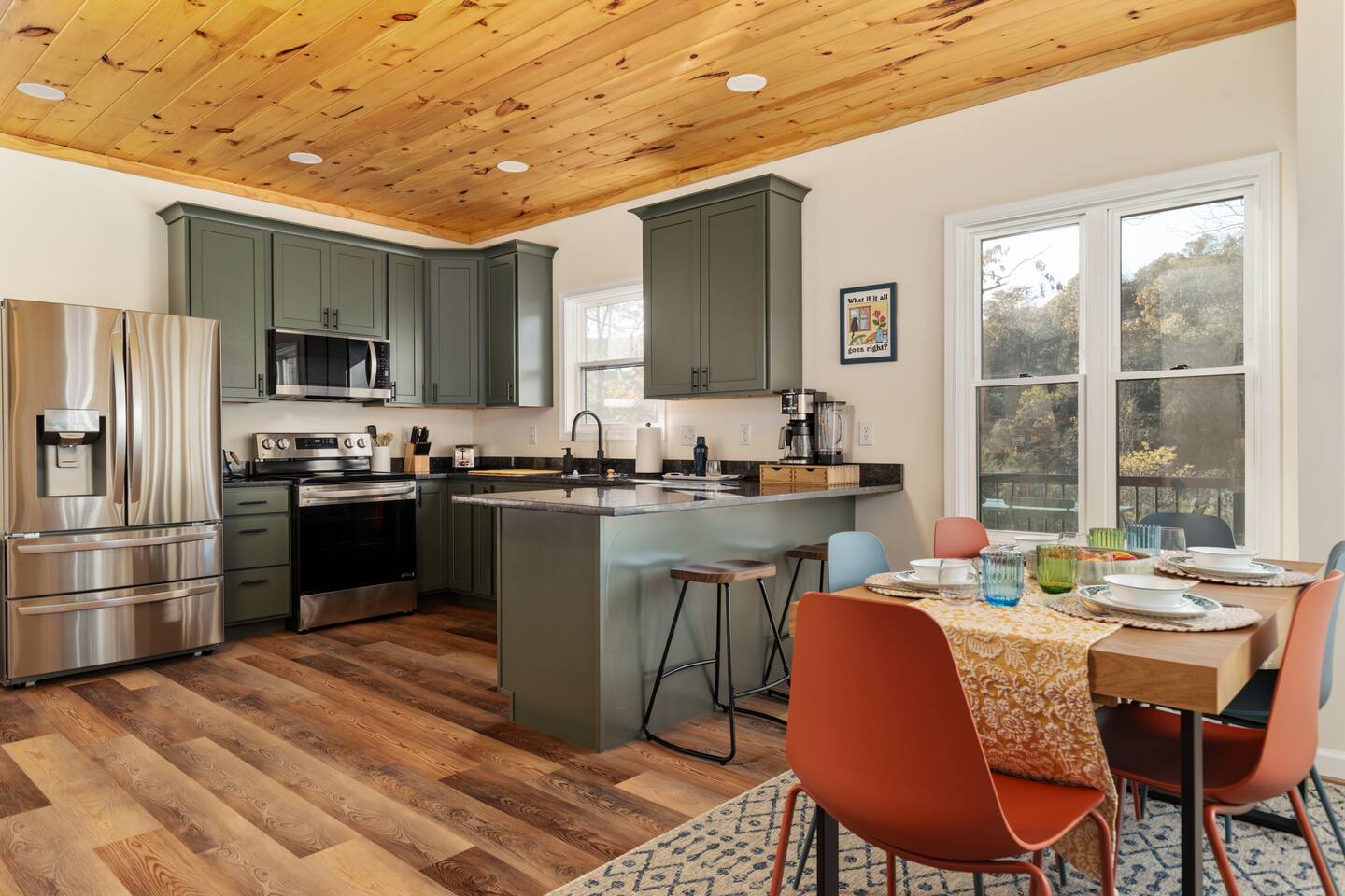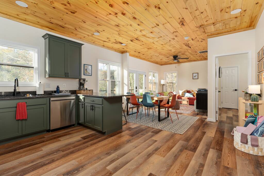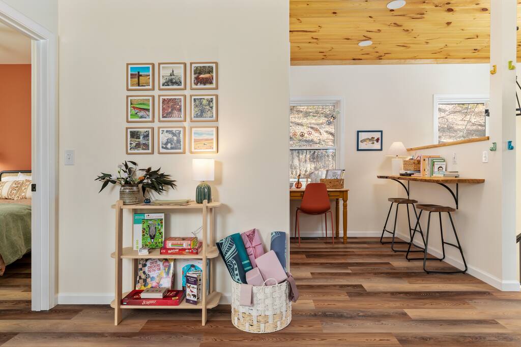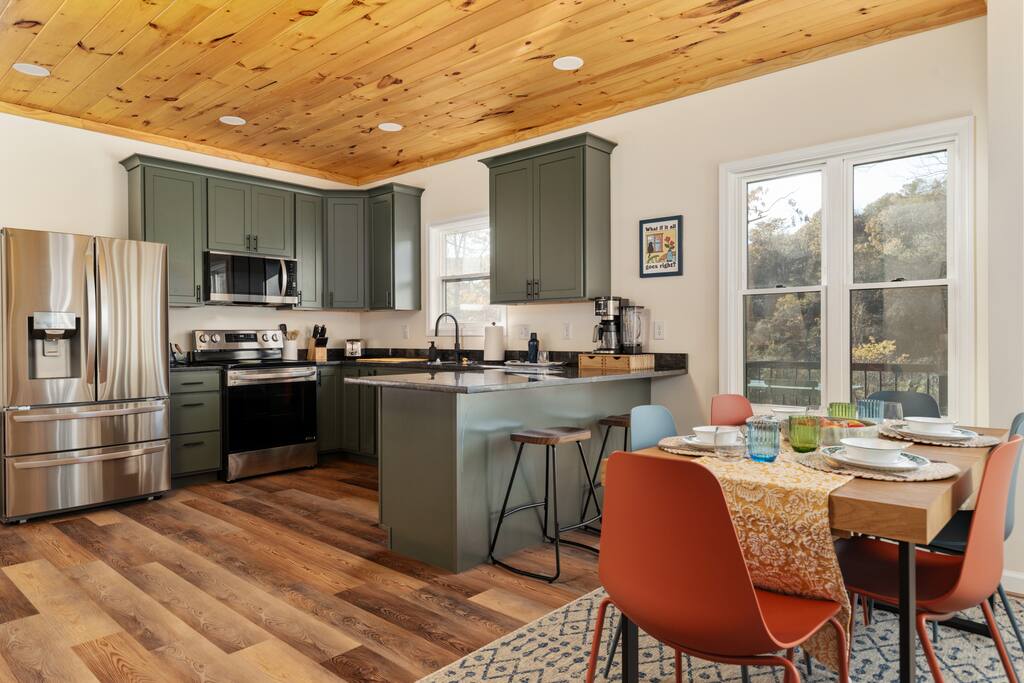 πΏ Your West Virginia Forest Cabin | Cozy, Peaceful & Restorative πΏ π Nearby Highlights: π² George Washington National Forest β endless trails, waterfalls & wildlife π Lost River State Park β scenic overlooks, swimming & horseback riding π Trout Pond Recreation Area β WVβs only natural lake for fishing & kayaking π Short drive to Shenandoah National Parkβs Skyline Drive β breathtaking mountain views π Day Trips: Dolly Sods, Seneca Rocks, Thomas & Davis π‘ Nearby towns: Wardensville & Woodstock β local dining, art & cozy cafΓ©s π Property Highlights - Peaceful forest setting with mountain views - EV charger β 240v NEMA 14-50 outlet (bring your mobile charging kit) - High-speed Wi-Fi β great for streaming or remote work - Keyless entry for simple check-in - Record player + curated vinyl collection - Art supplies, books & board games for mindful downtime - Yoga mats + spacious deck for meditation or morning coffee - Fire pit with Adirondack seating (BYOW β bring your own wood) - Gas grill (propane provided) - Coffee provided β enjoy your morning brew on the deck - Exceptional stargazing β clear mountain skies & zero light pollution β¨οΈ Hot tub arriving November 2025 π Sleeping Arrangements - Bedroom 1: Queen bed (coral accent wall, main floor) - Bedroom 2: Queen bed (green accent wall, forest views) - Bedroom 3: Twin-over-Full bunk bed + pull-out trundle πΌ Optional Pack βn Play available (bring linens) π Interior Features - Bright, open living space with vaulted pine ceilings - Cozy sectional seating + Smart TVs - Record player, book collection & family games - Warm lighting & curated art for creative calm - Dining area for 6 with forest-view windows π³ Fully Equipped Kitchen - Stainless appliances (fridge, stove, oven, dishwasher, microwave) - Coffee maker: Drip + Keurig machine β coffee provided β - Blender, toaster, crockpot & cooking essentials - Dinnerware, utensils & cookware provided - Quartz countertops & bar seating for two π³ Outdoor Oasis - Expansive deck with dining table (seating for 4) & forest views - Yoga & meditation space with mats provided - Wood-burning fire pit (BYOW β bring your own wood) - Outdoor seating perfect for crisp fall mornings or winter nights under the stars - Frequent wildlife sightings β deer, birds & the occasional bear (admire safely from a distance) π¬οΈ Comfort & Convenience - Central heat & A/C - Fresh linens, towels, and paper goods included - Shampoo, conditioner & body wash provided - Washer & dryer available for guest use