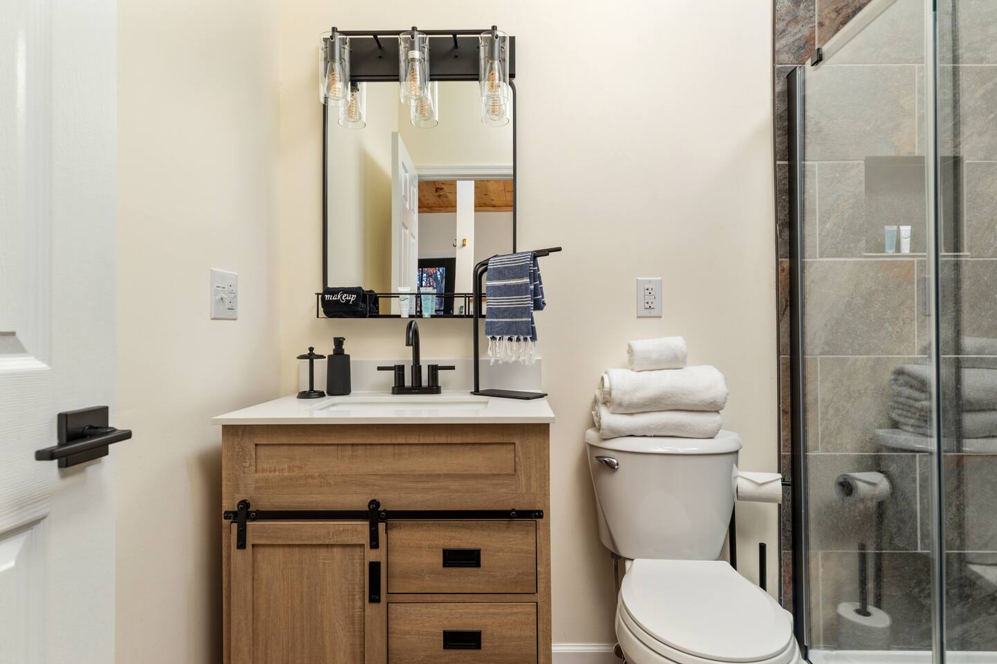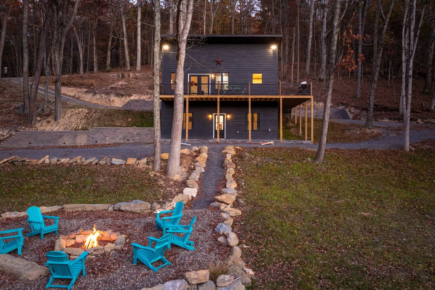 Guests have full access to the entire cabin, deck, and private yard via keyless entry. There is one owner's closet that will be locked. Please do not try to access it during your stay. Stream of Consciousness is located along a well-maintained gravel mountain road with a moderately steep driveway. Most guests arrive without issue, but during heavy rain or snow, an all-wheel or four-wheel drive vehicle is strongly recommended. A capable vehicle will make your arrival smoother and ensure easy access in all conditions.
