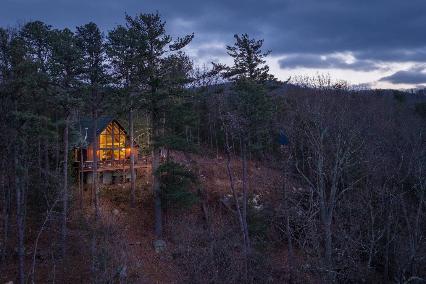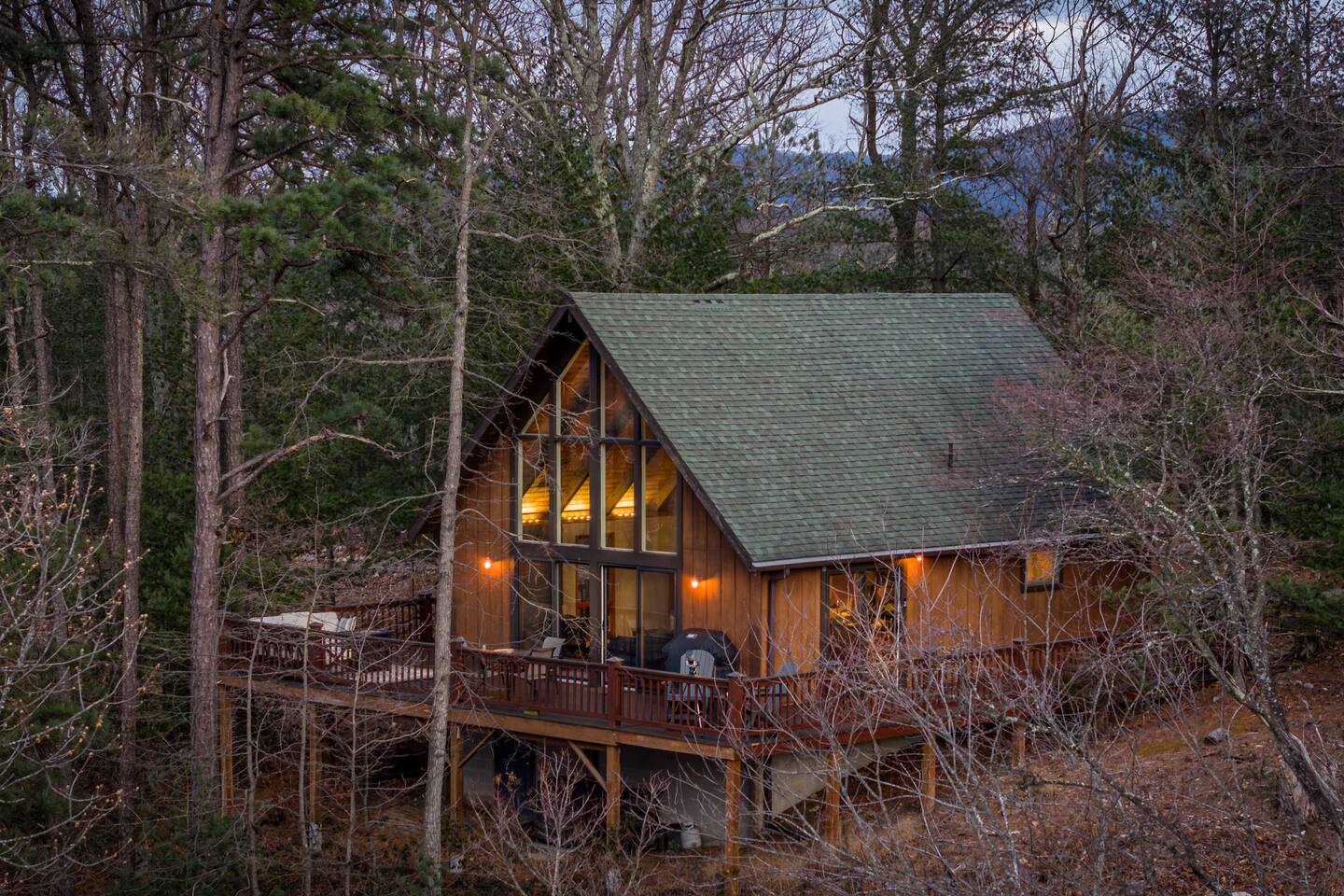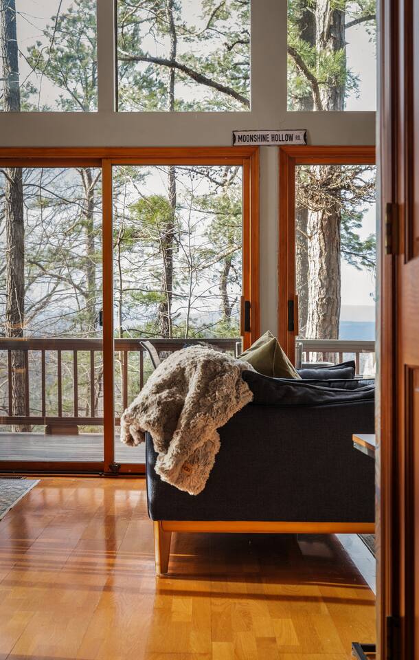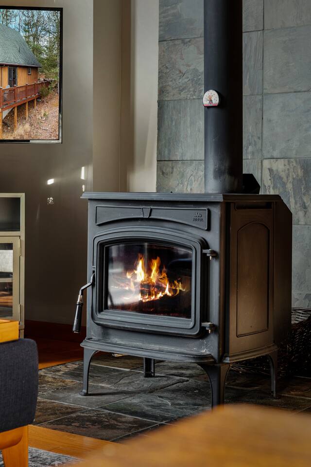 Welcome to Moon View A-Frame, a cozy mountain escape perched among the trees with sweeping Appalachian views. Floor-to-ceiling windows fill the cabin with natural light, while a wood-burning stove creates the perfect setting for winter and early spring stays. Step onto the spacious deck to take in rolling ridgelines, or gather by the outdoor fire pit for quiet nights under the stars. Designed for rest, views, and slow mountain moments—ideal for couples, families, or peaceful remote work getaway.