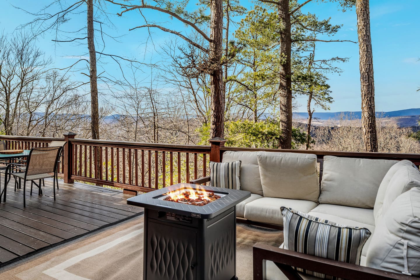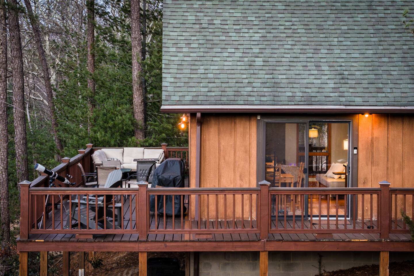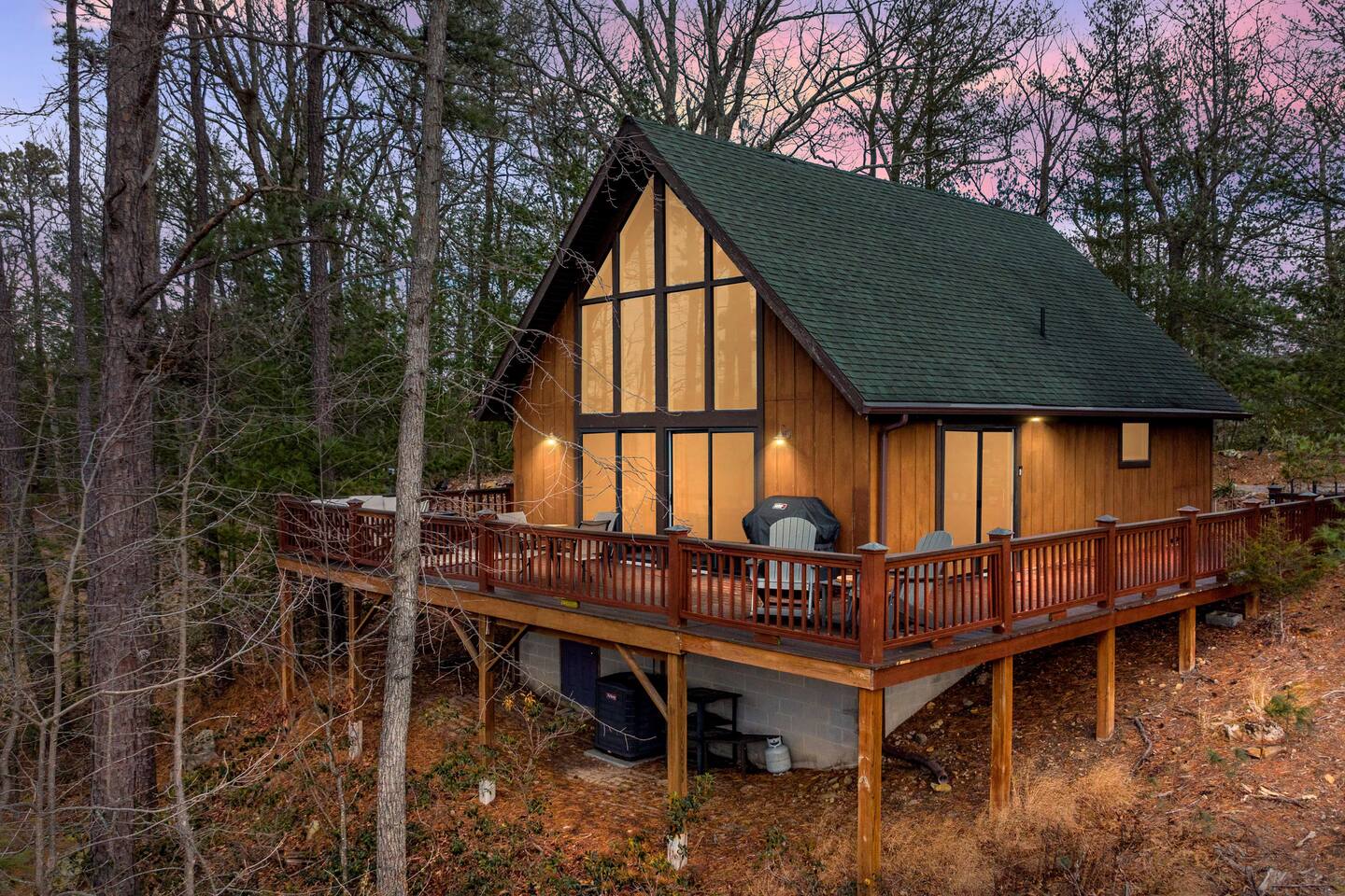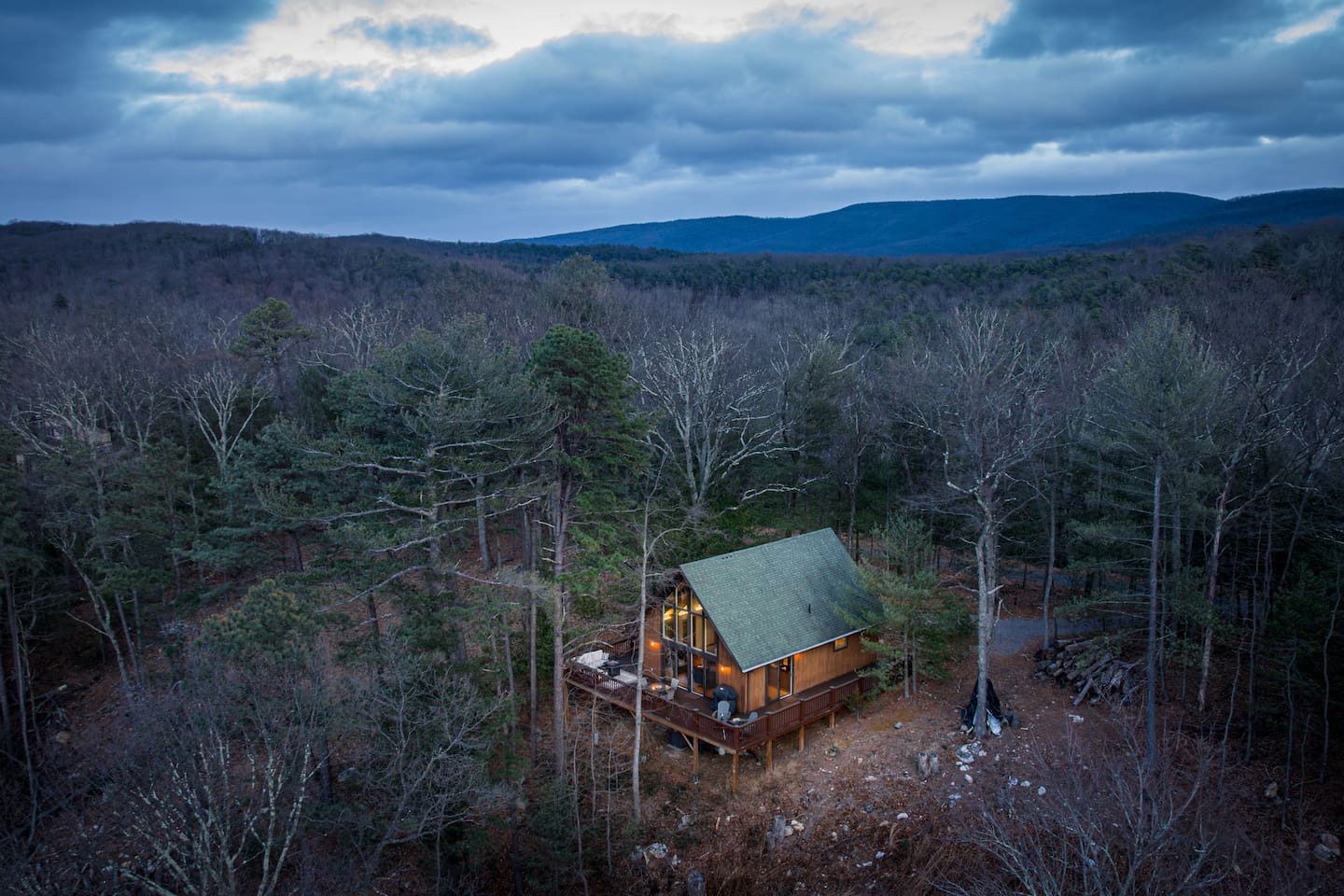 Welcome to Moon View A-Frame, a cozy mountain escape perched among the trees with sweeping Appalachian views. Floor-to-ceiling windows fill the cabin with natural light, while a wood-burning stove creates the perfect setting for winter and early spring stays. Step onto the spacious deck to take in rolling ridgelines, or gather by the outdoor fire pit for quiet nights under the stars. Designed for rest, views, and slow mountain moments—ideal for couples, families, or peaceful remote work getaway.