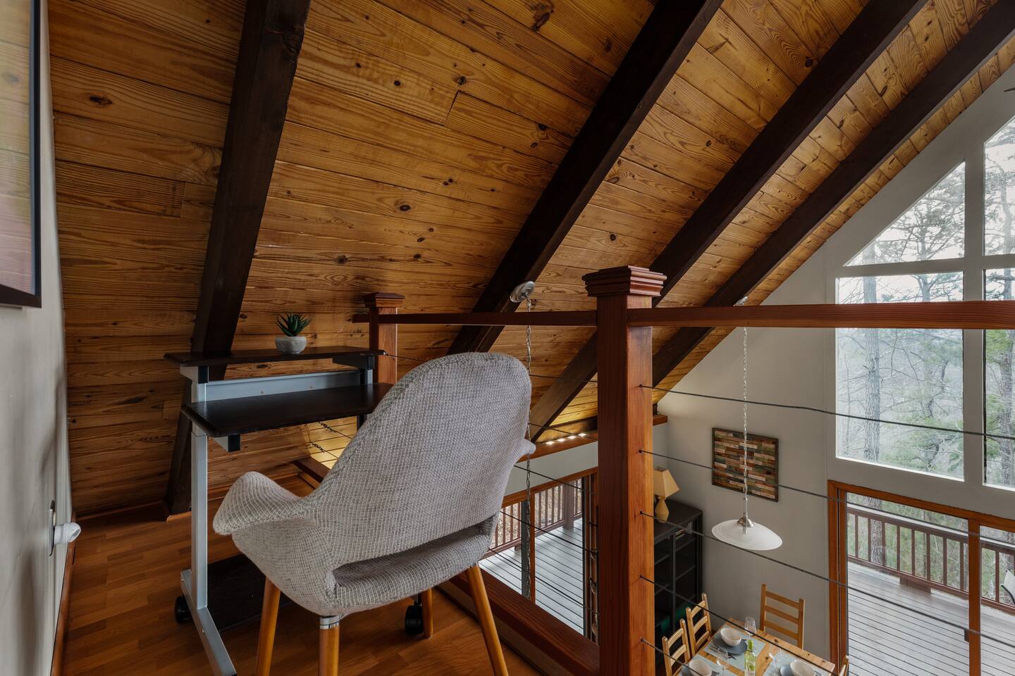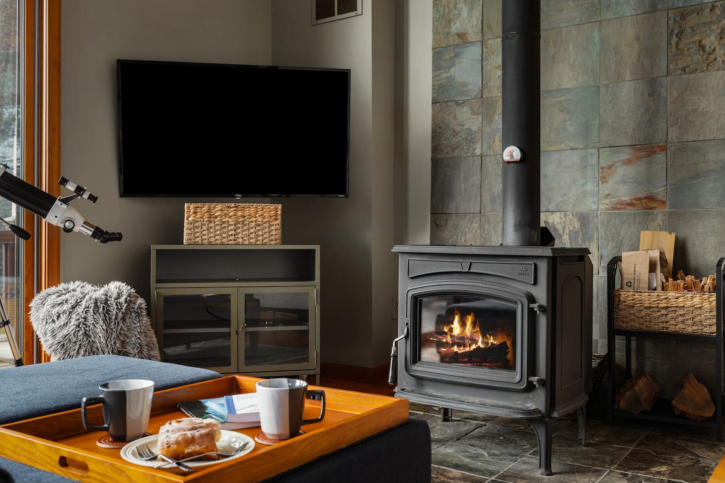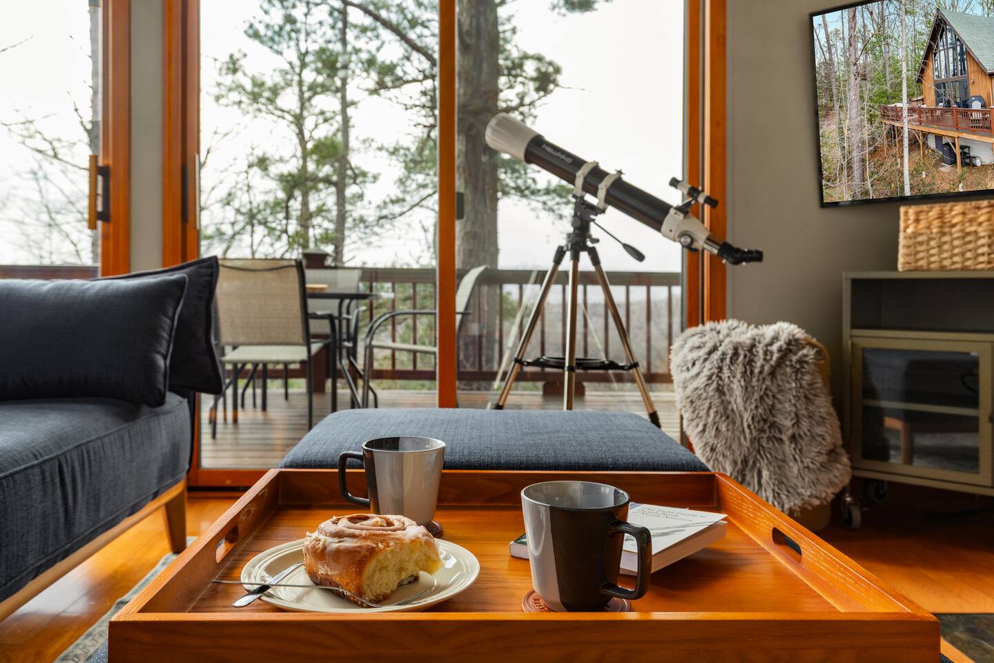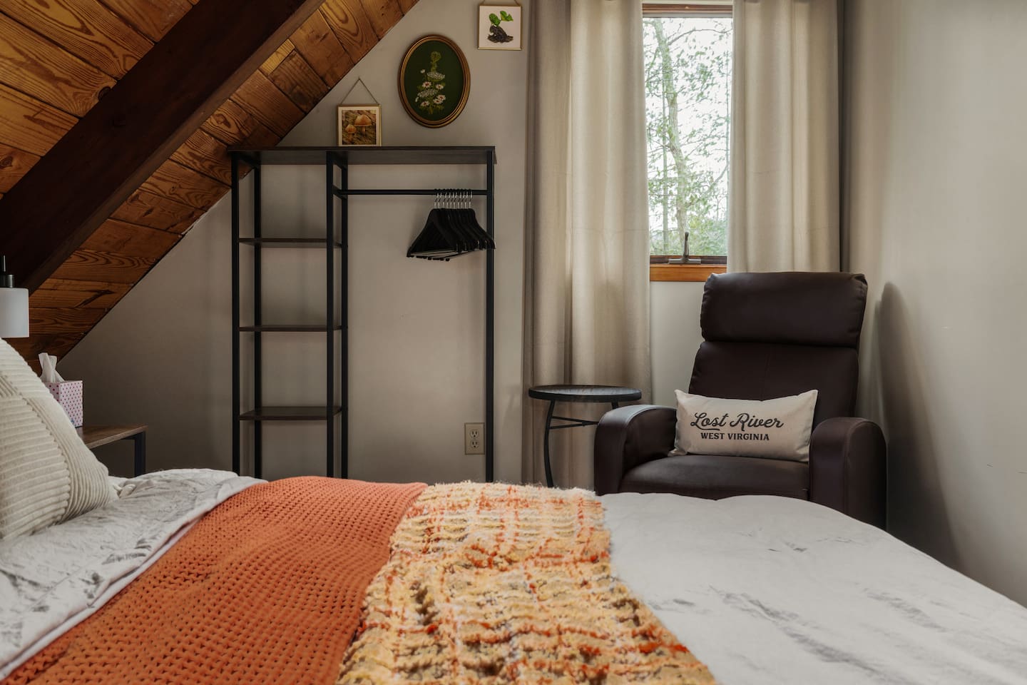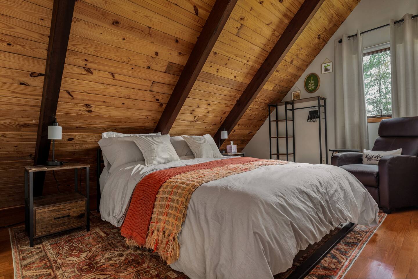 🌙 Moon View A-Frame | Mountain Views, Cozy & Quiet 🌙 As you wind up the mountain road, the trees open just enough to reveal long, rolling ridgeline views. Moon View A-Frame sits quietly among the forest, elevated for privacy and perfectly positioned for sunsets, moonrise, and star-filled nights. Mornings begin with light pouring through the expansive windows, coffee in hand, and nothing but mountains stretching into the distance. Evenings slow down by the fire—inside or out—where the quiet feels intentional and deeply calming. Living Space Moon View A-Frame comfortably sleeps up to 6 guests and is ideal for couples, families, or small groups seeking a peaceful mountain escape. The open-concept living space features vaulted wood ceilings, classic A-frame architecture, and large picture windows that frame the surrounding forest and distant mountain views. Natural light fills the cabin throughout the day, creating a warm, inviting atmosphere year-round. Sleeping Arrangements The cabin offers three thoughtfully designed bedrooms: - Bedroom 1 (Main Level): Queen bed with forest views - Bedroom 2 (Upper Level): Full size bed tucked under the A-frame ceiling - Bedroom 3 (Upper Level): Full size bed tucked under the A-frame ceiling Each room features cozy bedding, warm wood accents, and a quiet, restful feel. Indoor Living - Indoor spaces are designed for slow mornings and cozy winter nights. The living area centers around a wood-burning stove, perfect after chilly hikes or snowy days. Guests can relax with Smart TV, books, and board games, or take advantage of the telescope for moon and stargazing through the large windows. - High-speed Wi-Fi supports streaming or remote work, making this a great off-season retreat. Kitchen & Dining The fully equipped kitchen is designed for easy meals and relaxed gatherings, featuring: - Stainless steel appliances - Ample counter space - Bar seating - Dining table with forest and mountain views - Whether you’re cooking dinner or enjoying a slow breakfast, the kitchen flows seamlessly into the living space. Outdoor Living - Step onto the spacious deck to take in sweeping mountain views that feel especially dramatic in late winter and early spring. Start your day with sunrise coffee, watch the fog lift from the valleys, or settle into Adirondack chairs as the light fades. - Next to the A Frame, the outdoor fire pit creates the perfect spot for evening gatherings, marshmallows, and stargazing. With minimal light pollution, the night sky here is exceptionally clear. Nearby Highlights - Trout Pond Recreation Area – WV’s only natural lake, perfect for quiet walks and photography - GW National Forest – hiking, wildlife spotting & peaceful winter trails - Lost River State Park – scenic overlooks & forest exploration - Canaan Valley & Bryce Resort – skiing, snowboarding & tubing day trips - Dolly Sods & Seneca Rocks – iconic West Virginia landscapes - Wardensville & Woodstock – local dining, coffee shops & small-town charm Property Highlights - Rolling mountain and forest views - Classic A-frame architecture - Wood-burning stove - Large windows with abundant natural light - Outdoor fire pit with seating - Telescope for stargazing & moon viewing - High-speed Wi-Fi for streaming or remote work - Washer & dryer - Self check-in - Peaceful, private setting with abundant wildlife